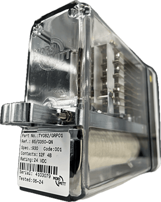 The TY082/GRP01 is a 12F 4B Neutral Line Relay for general railway trackside signalling applications where special characteristics such as AC immunity, slow release etc. are not required. Of compact modular plug-in design it has non-weld contacts and is equipped with a safety interlocking system (pin code) for insertion into mating plugboards.