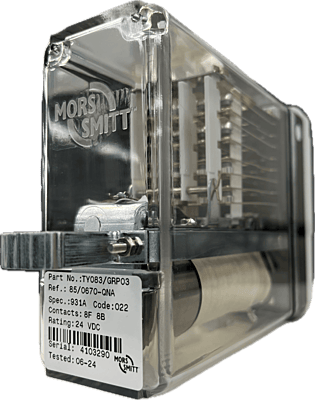 The TY083/GRP03 is an 8F 8B AC Immune DC Neutral Line Relay for general railway trackside signalling applications where special characteristics such as slow release etc. are not required. Of compact modular plug-in design it has non-weld contacts and is equipped with a safety interlocking system (pin code) for insertion into mating plugboards.
