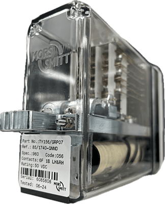 The TY156/GRP07 is a Twin 6F 1B Neutral Line Relay for general railway trackside signalling applications where special characteristics such as AC immunity, slow release etc. are not required. Double windings allow use in railway signalling circuits where operation from either of two separate supplies is required. Twin relays consist of two relays which in effect are electrically and mechanically independent, housed in a single enclosure to the dimensions of a single relay to BR930.