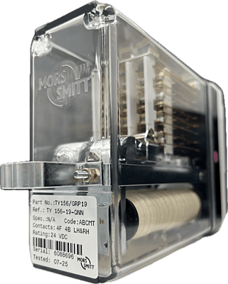 The TY156/GRP19 is a Twin 4F 4B Neutral Line Relay with high operate voltage for general railway trackside signalling applications where special characteristics such as AC immunity, slow release etc. are not required. Twin relays consist of two relays which in effect are electrically and mechanically independent, housed in a single enclosure to the dimensions of a single relay to BR930. Of compact modular plug-in design it has non-weld contacts and is equipped with a safety interlocking system (pin code) for insertion into mating plugboards.