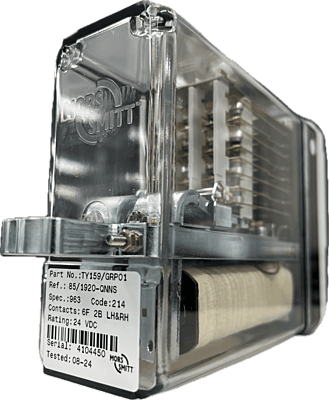 The TY159/GRP01 is a Twin 6F 2B slow operate, slow release neutral line relay for railway trackside signalling applications where AC immunity is not required. Twin relays consist of two relays which in effect are electrically and mechanically independent, housed in a single enclosure to the dimensions of a single relay to BR930. Of compact modular plug-in design, it has non-weld contacts and is equipped with a safety interlocking system (pin code) for insertion into mating plugboards.